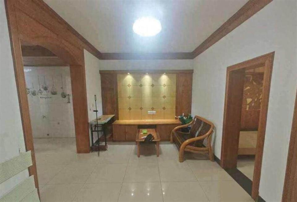 这套房子位于南宁青秀区七星路128号的自治区党委大院小区,建筑面积82.08平方米,位于步梯楼的二楼。 房子是三房户型,但客厅不大,阳台设计在其中一个房间里,并非时下流行的客厅连通阳台格局。 从拍卖图片看,装修状况非常普通,而且房子目前还带着租约,租期要到今年9月才结束。